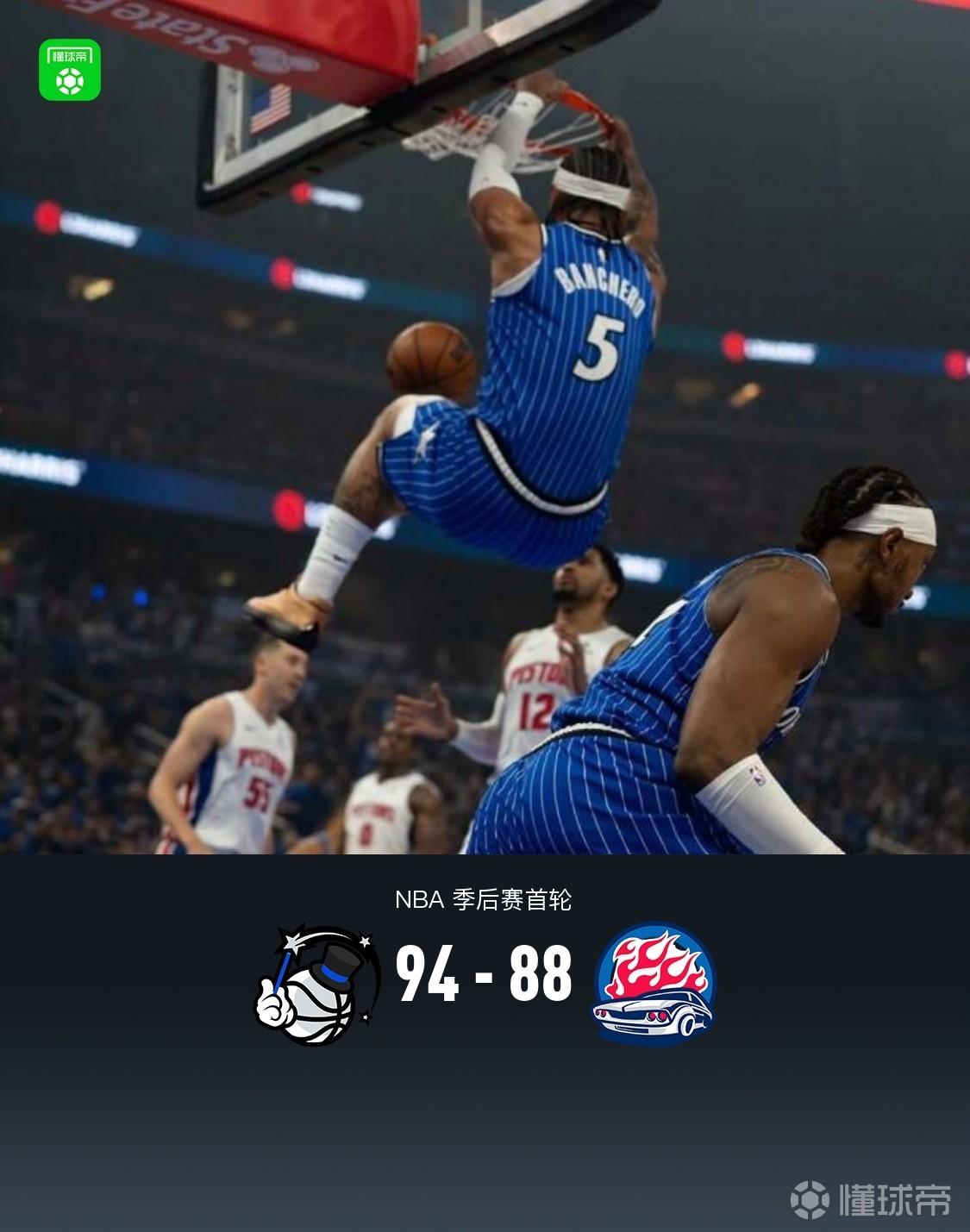北京时间4月28日NBA 季后赛首轮G4,奥兰多魔术对阵底特律活塞。上半场双方相继取得过两位数领先,半场魔术54-52活塞,下半场双方防守强度进步提升,持续肉搏拉锯,比赛最后阶段魔术贝恩关键打板三分领先6分占得先机,最终魔术94-88活塞。大比分3-1夺赛点。