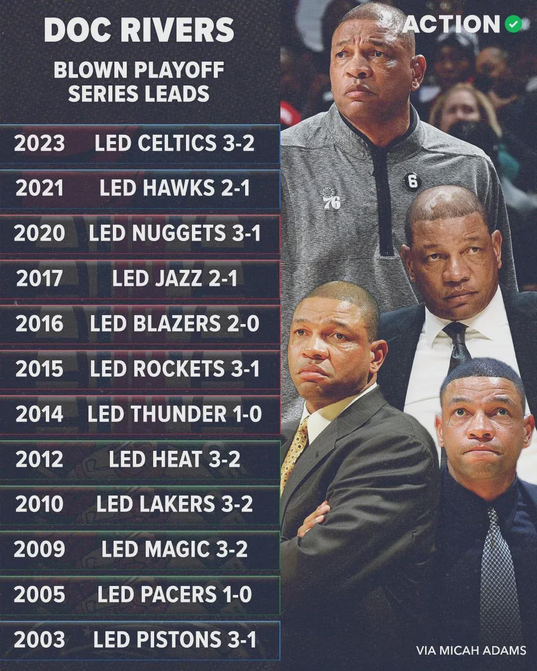 里弗斯执教生涯3-1领先被逆转3次,3-2领先被逆转7次,10次输掉抢七大战!对于里弗斯,大家还有哪些记忆?