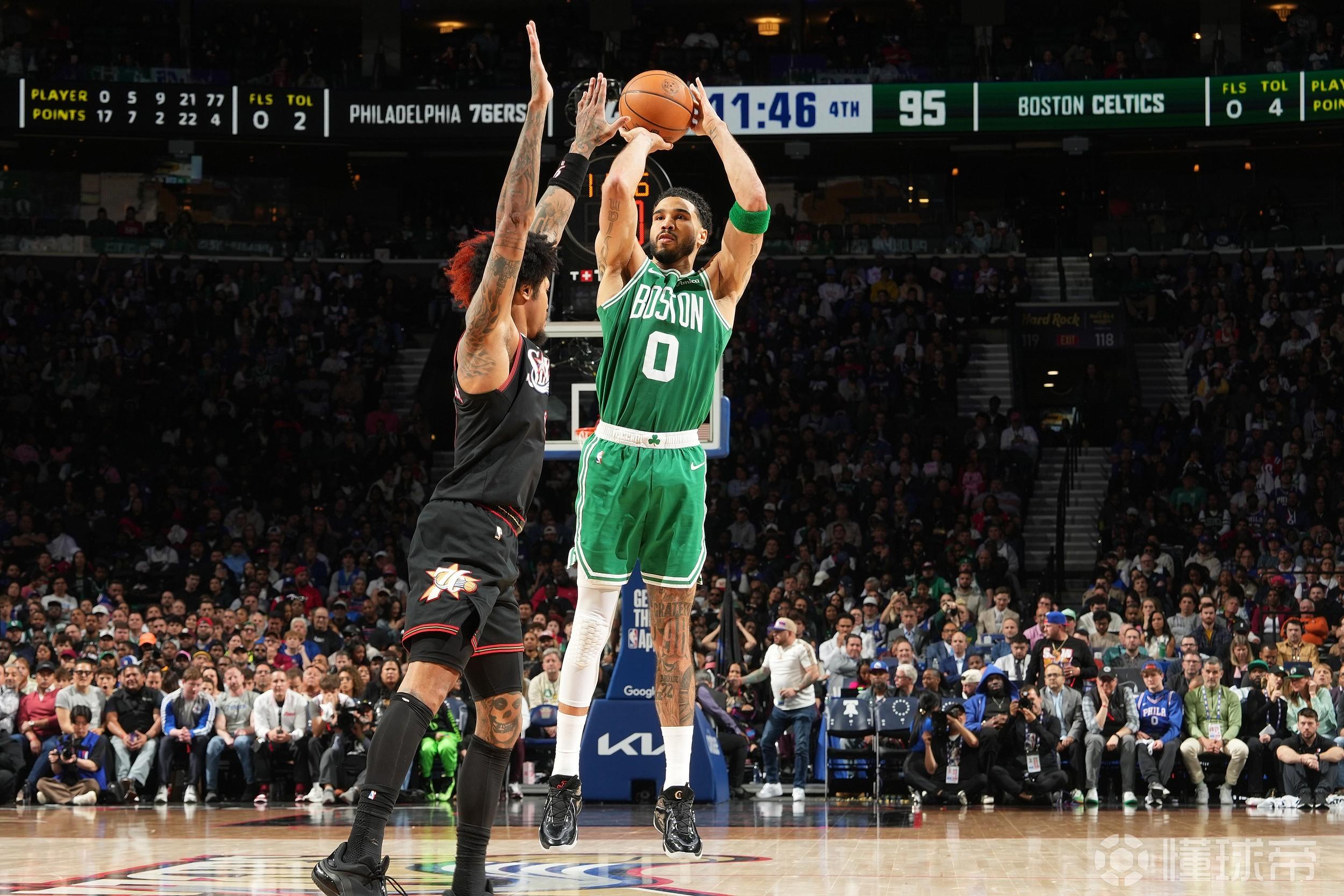 北京时间4月27日,凯尔特人在系列赛G4里128-96大胜76人,将比分带到3-1。本场比赛里,凯尔特人轰进24颗三分球,打破了队史季后赛三分纪录。