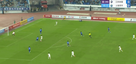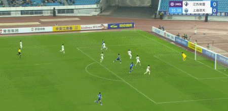 第36分钟,苗润东左路突破至禁区后起脚射门,皮球偏出球门