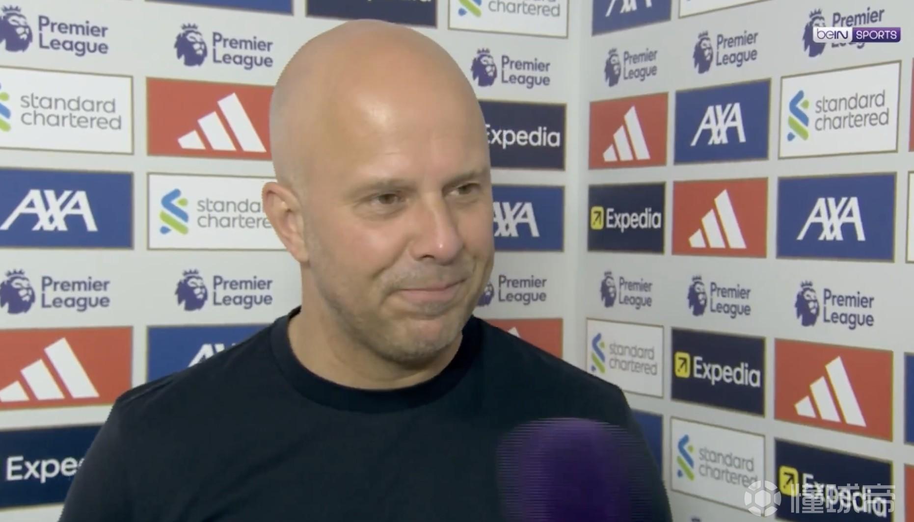 英超第34轮,利物浦主场3-1击败水晶宫,赛后,红军主帅斯洛特接受了拜因体育的采访。