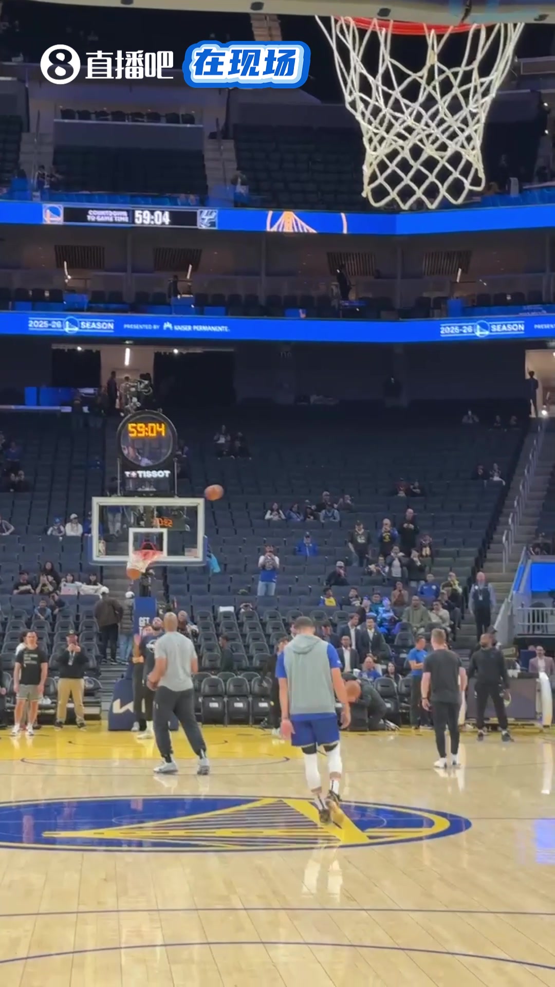 库里赛前热身秀了一记单臂暴扣膝盖看上去是完全没事了