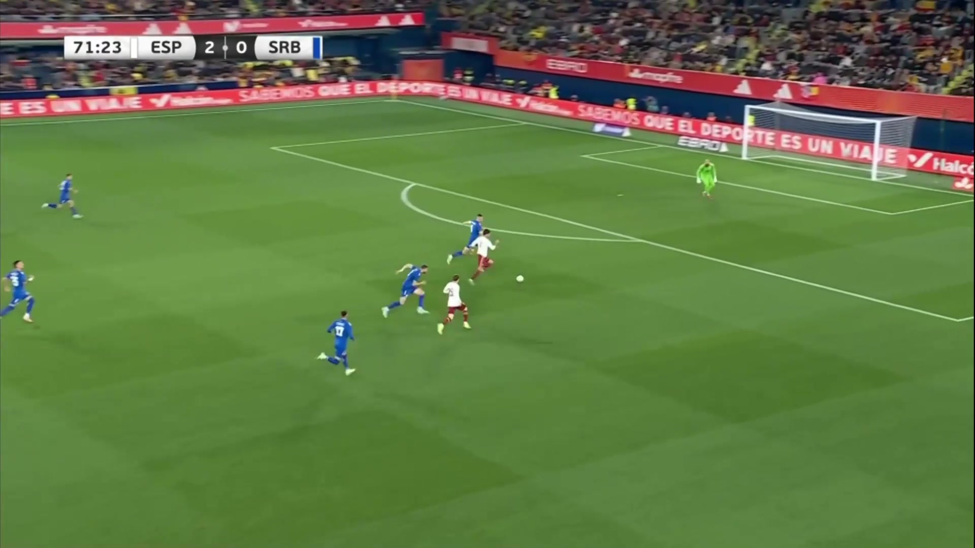 西班牙再下一城奥亚萨瓦尔外围起脚远射重炮破门双响