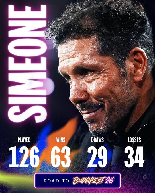 迭戈-西蒙尼从13/14赛季率领马德里竞技征战欧冠以来,已累计执教欧冠赛事126场,收获了63胜29平34负的战绩。