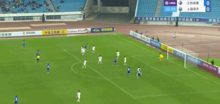 第36分钟,苗润东左路突破至禁区后起脚射门,皮球偏出球门