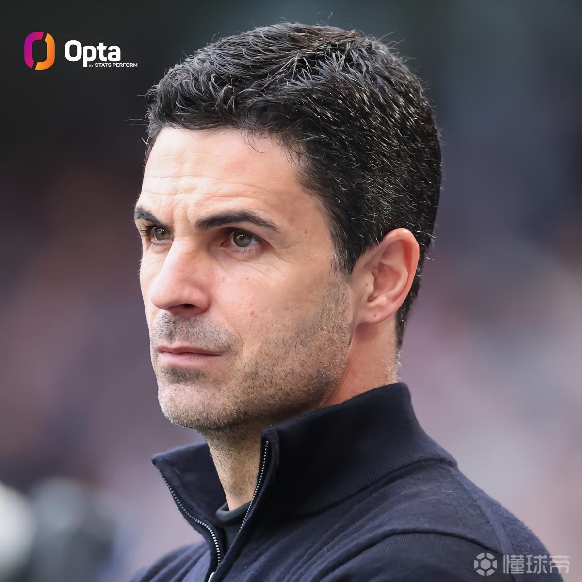 据Opta统计,今晚将是阿尔特塔治下阿森纳第539天占据英超积分榜首位,比其他从未夺冠的主教练领跑积分榜天数多出了200天。