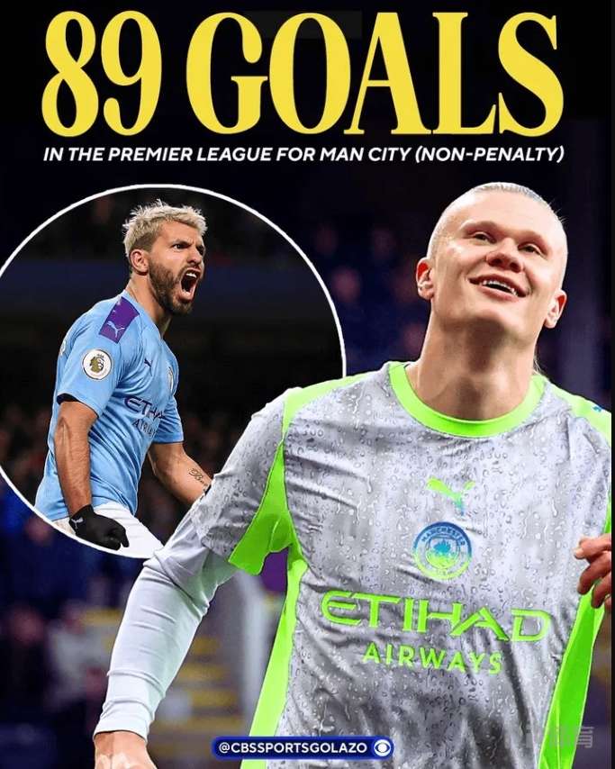 数据统计,哈兰德已经为曼城攻入了89个非点球进球,只有阿圭罗(157球)为曼城在英超联赛中攻入的非点球进球数多于哈兰德。
