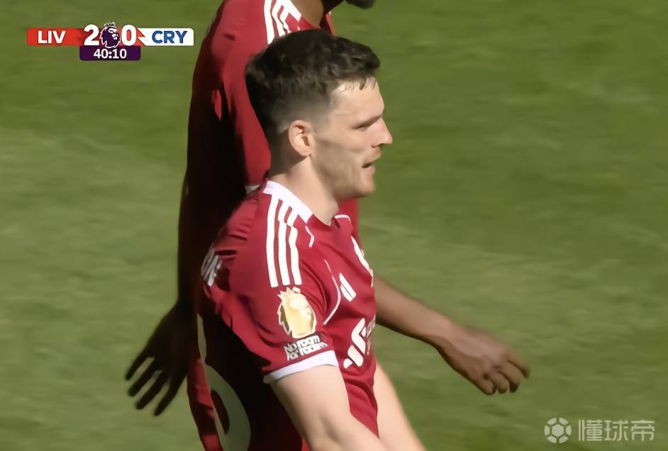 此役主场对阵水晶宫,首发出战的罗伯逊在比赛第40分钟接柯蒂斯-琼斯助攻破门,帮助利物浦取得2-0领先。