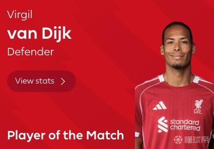 第100分钟绝杀,范戴克当选默西塞德德比全场最佳球员