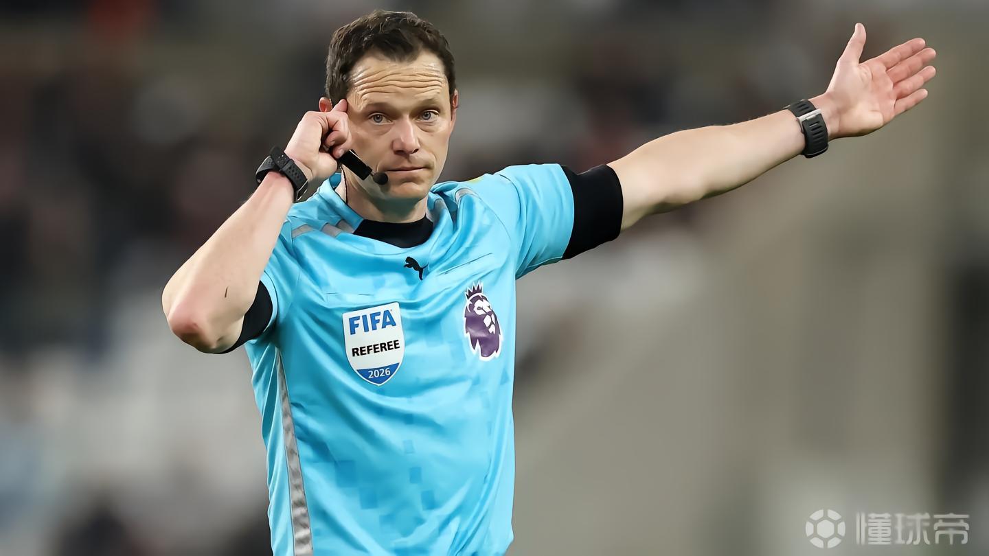 英超第35轮裁判:达伦-英格兰执法双红会,阿特维尔将担任VAR